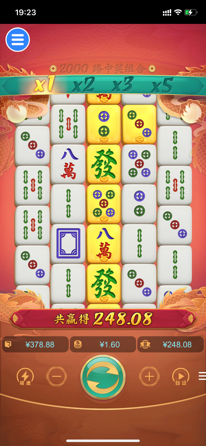 打的麻2 按顺序加注 最低开始 没进胡不换筹码 打到1.6爆了