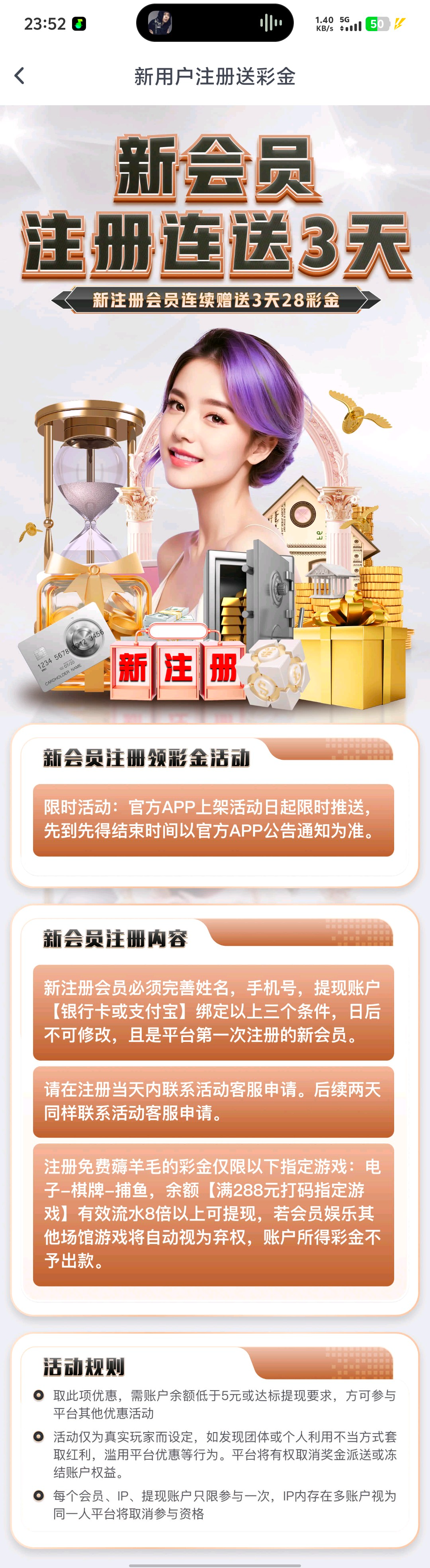注册绑定信息找客服申请新人彩金可以领取三天