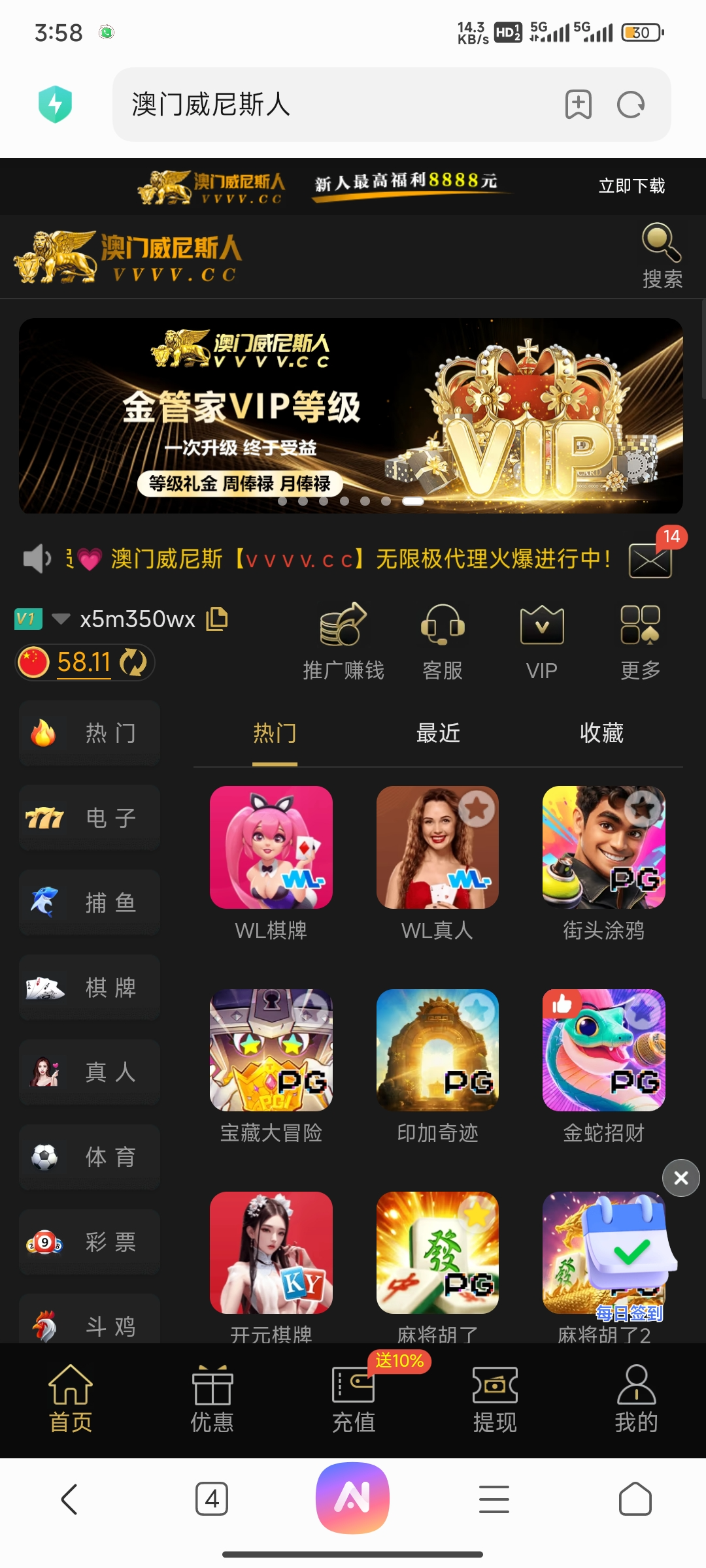 是的,第三次了,这个台子送彩金送的蛮频繁的 每次不是18就是58