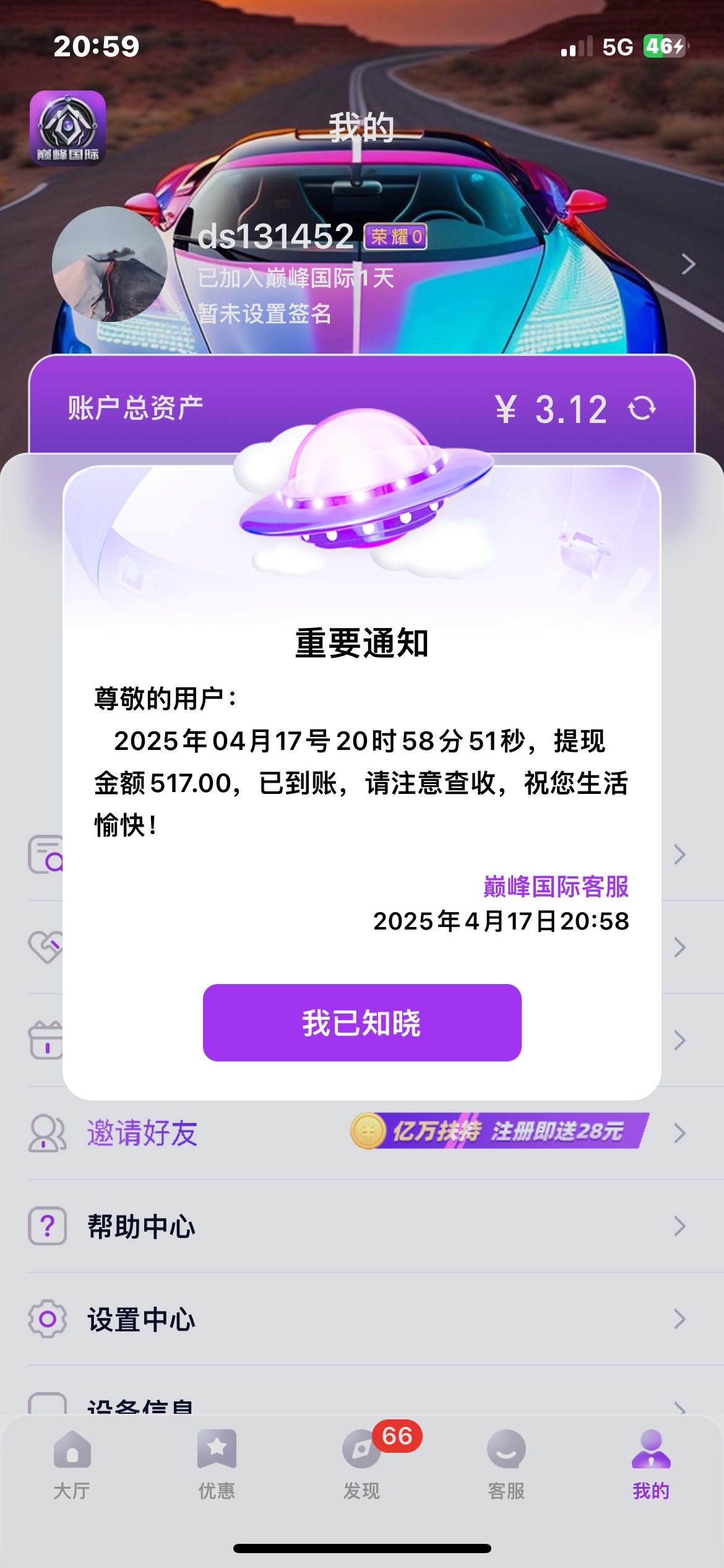 a891102中奖了,说没这个下级。系统有问题吧,从论坛进去注册下载的