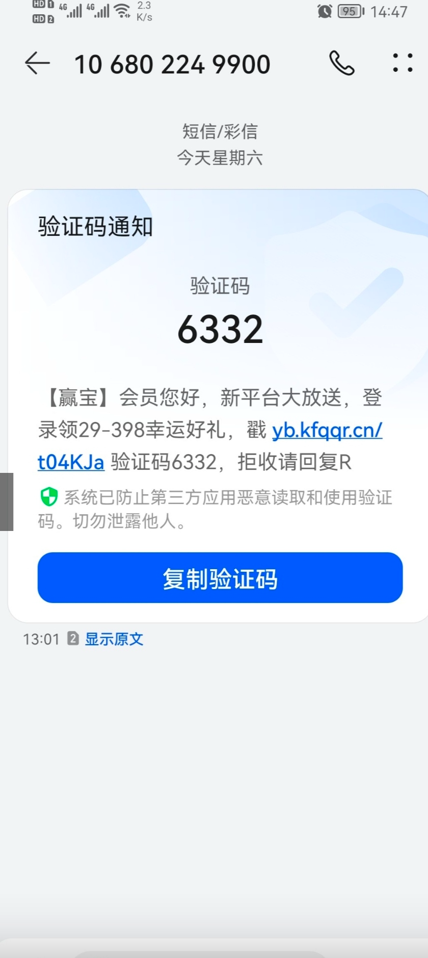 看看有没有收到这种短信,收到的去撸