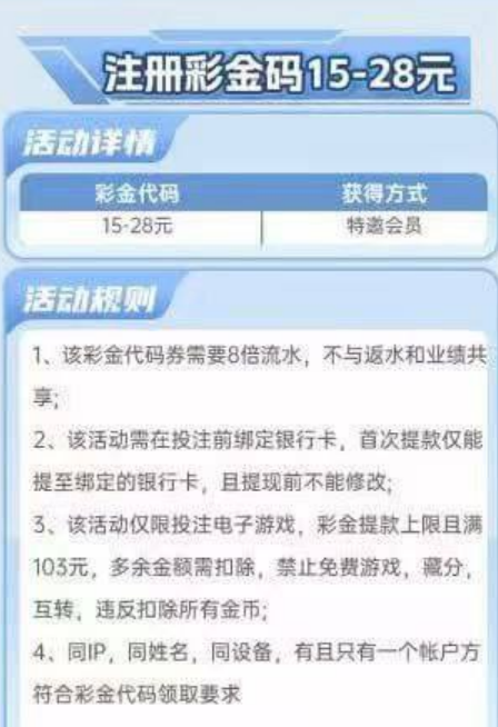 投注前绑定银行卡,8倍流水,只能玩电子游戏,不能买免费只能提103。