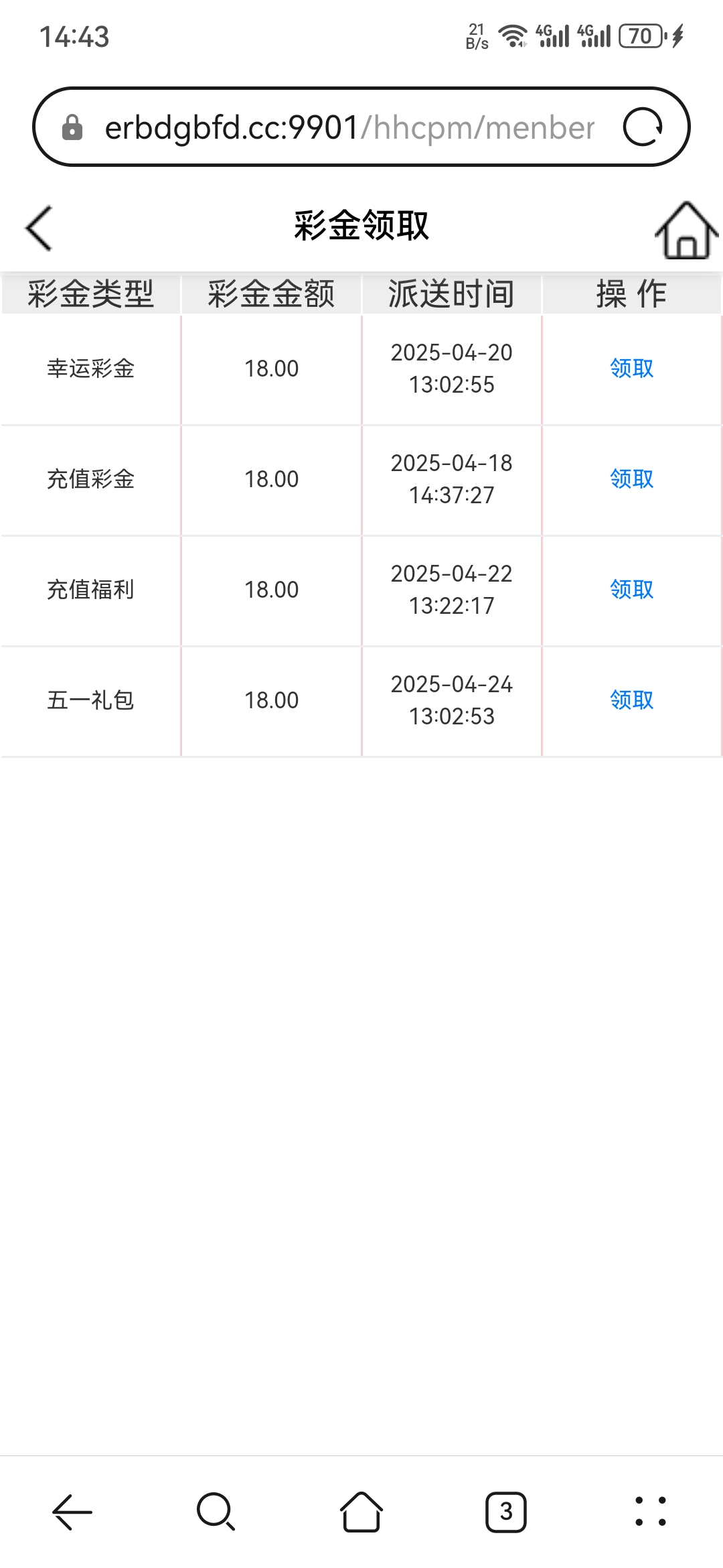 今天没事随便登入看看有4个18彩金,小吃150提款秒到