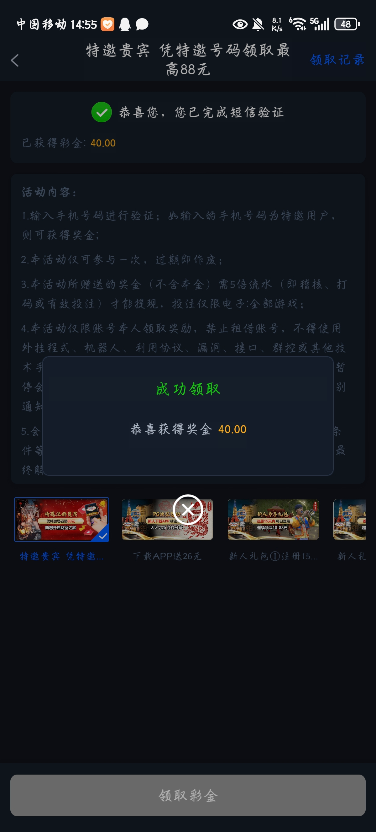 再优惠新人里面,有一个特邀活动,输入手机号去碰就行