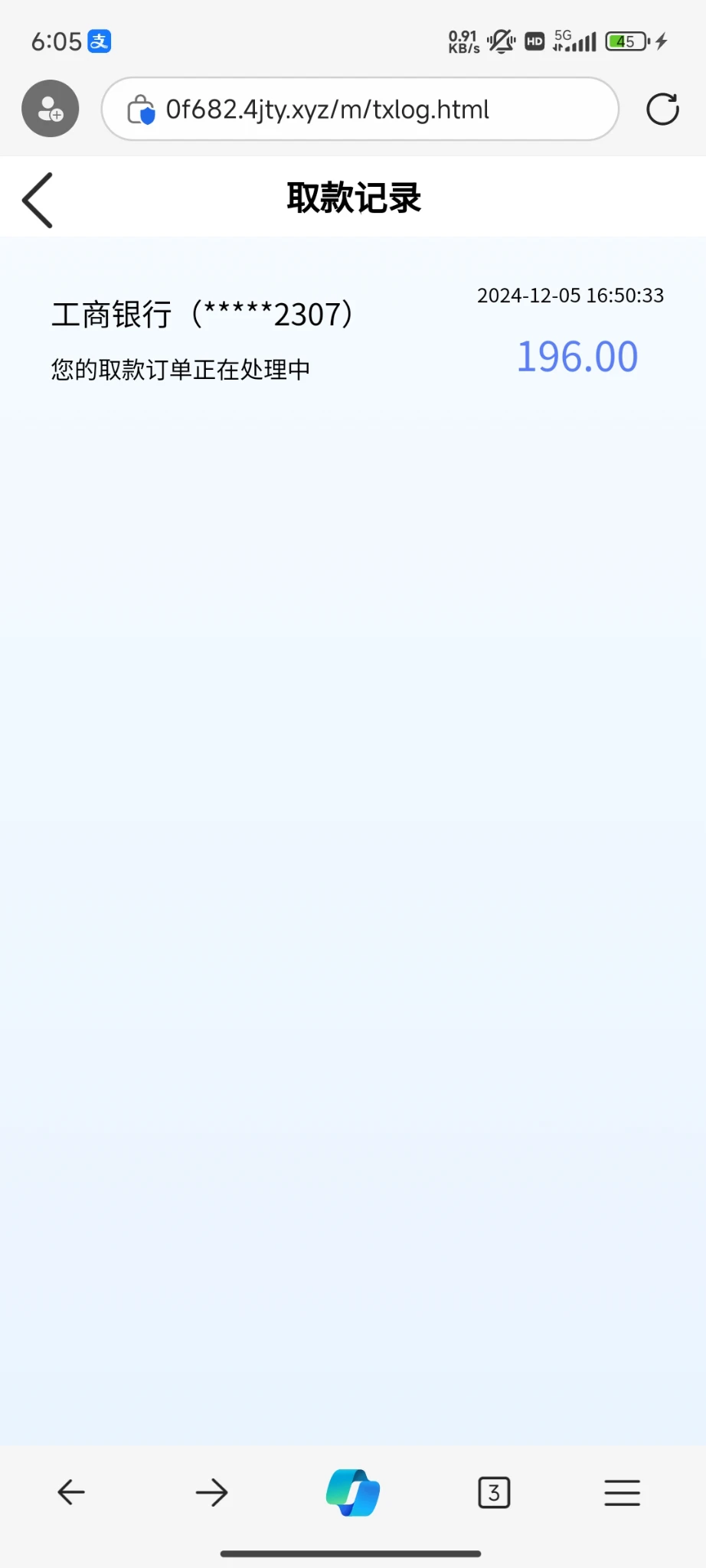 模仿的鸭脖四季体育,签到活动领了10.22,需要任意存款才能转入游戏,最低充10,搞了10块打到196提现,被冻结了。