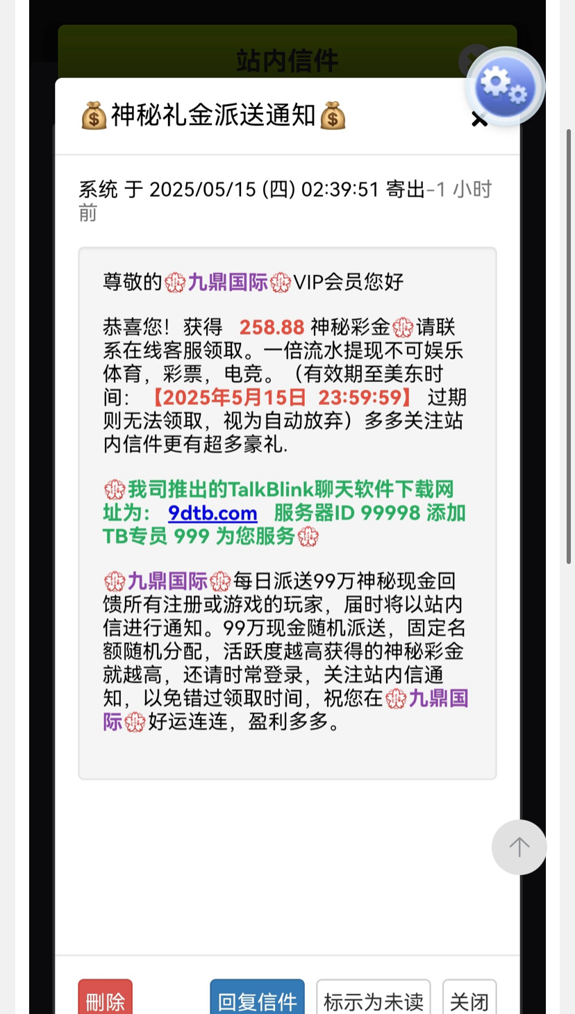 【九鼎国际】—✅—站内信彩金