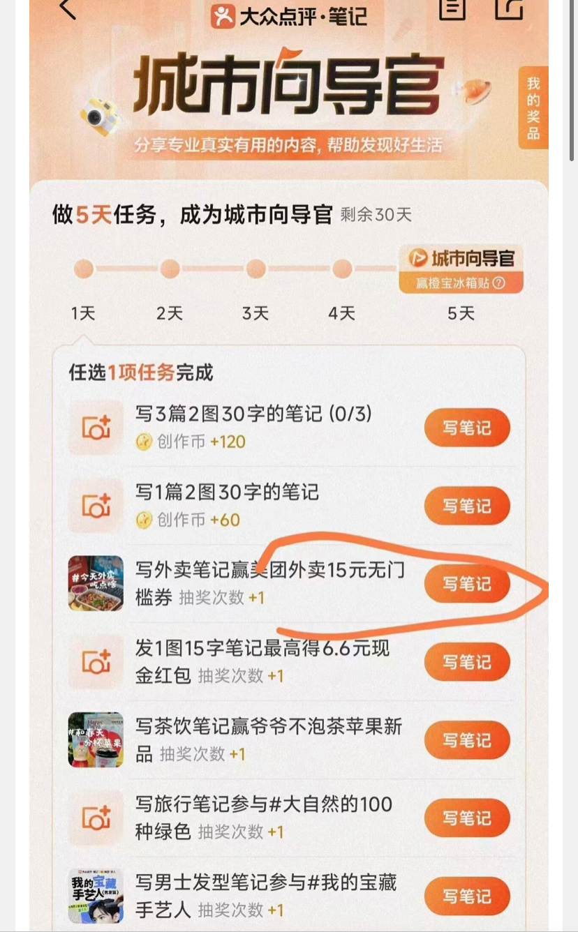 写一笔笔记,2图,50字随便写,目前应该是必中15亓无门槛外卖券,发完帖子,过一会儿就审核通过了,抽奖往下滑一下就能看到,别眼瞎,必须安排自己猪逼饭