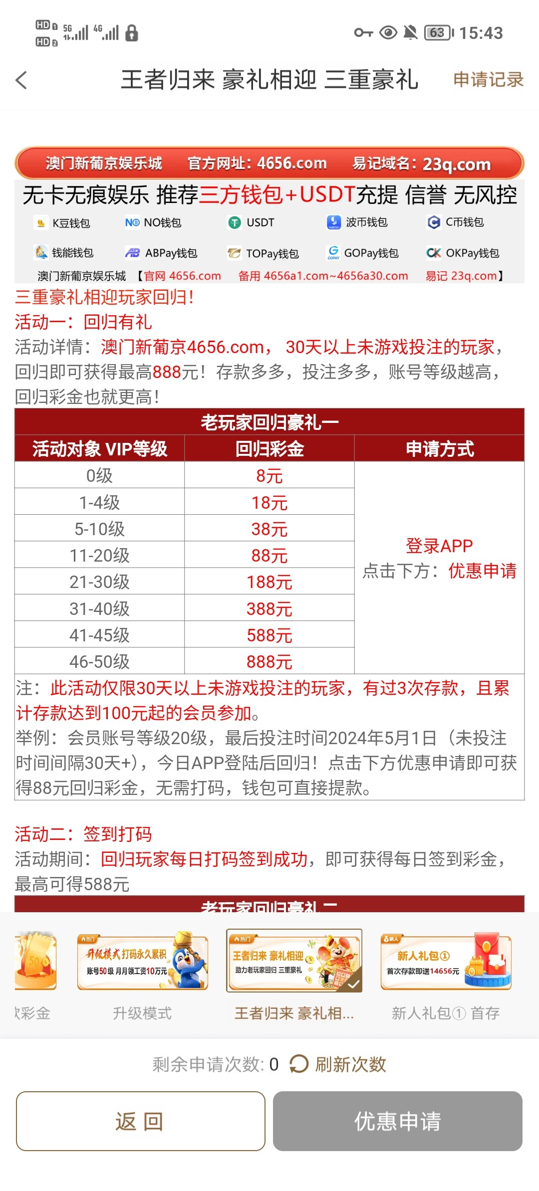 【新葡京4656神秘彩金+回归彩金】