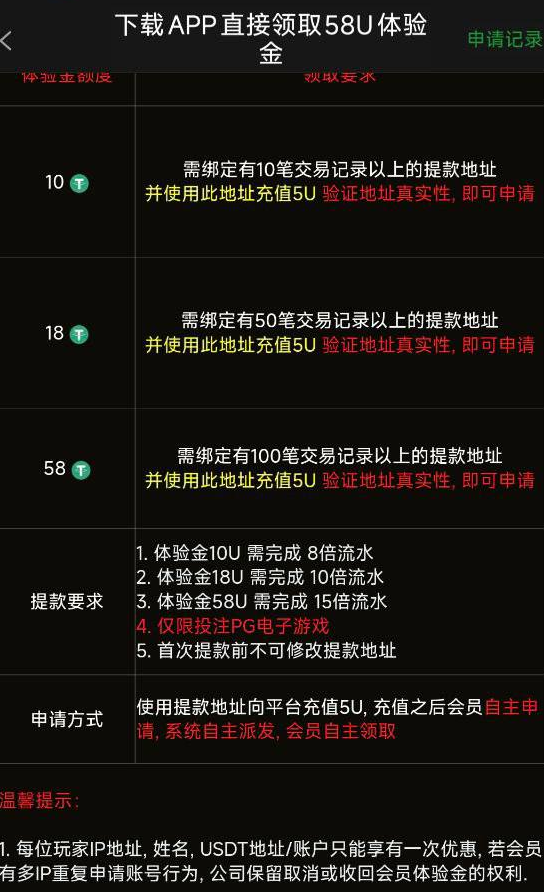 需要冷钱包转账5U然后申请符合自己的档位。