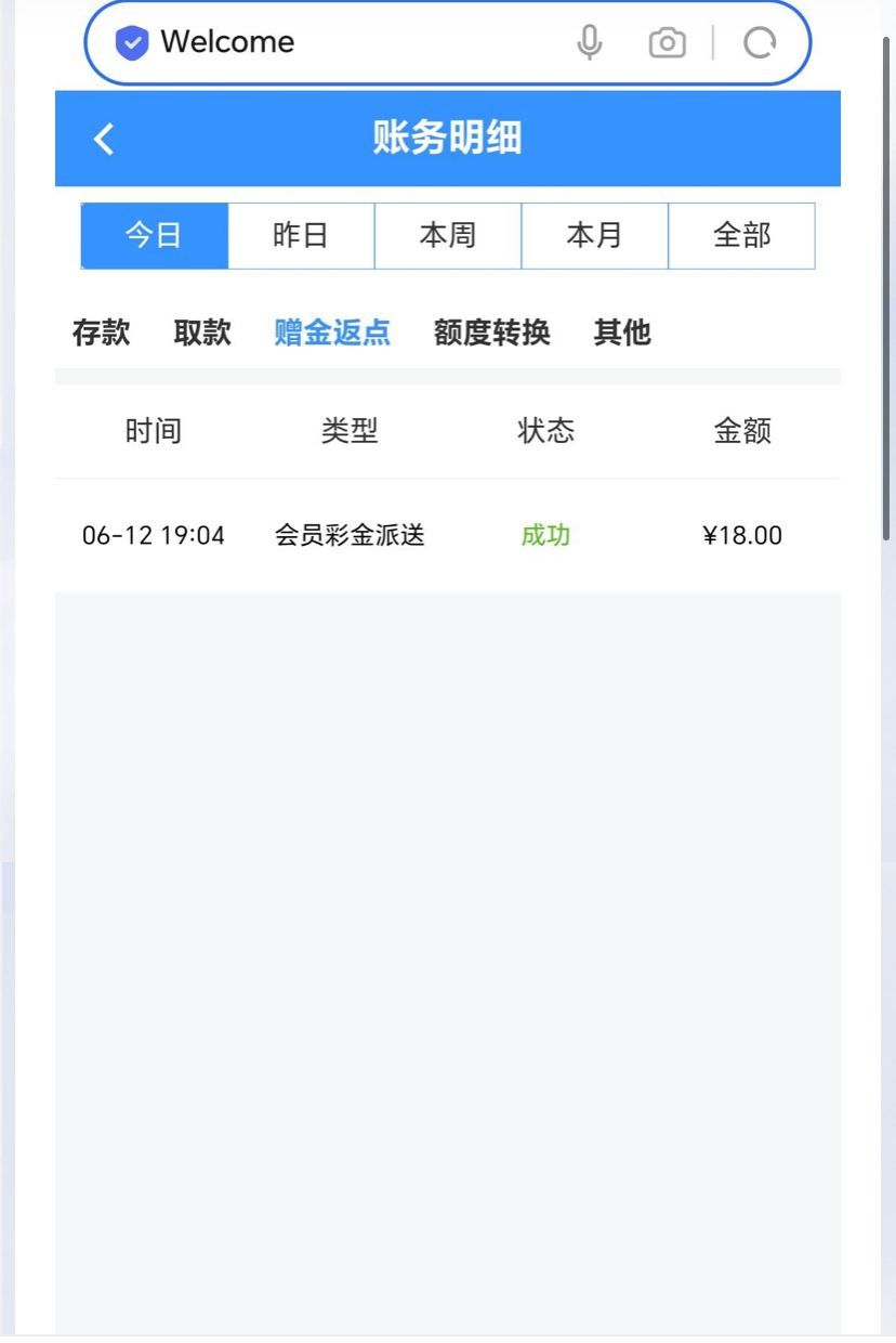 这个月9号注册的,没充值过,今天来的电话送了18没打出来!!没注册的注册一下等彩金吧!白嫖就行切勿充值看着像黑台!!网址  https://559333.com/m/#/