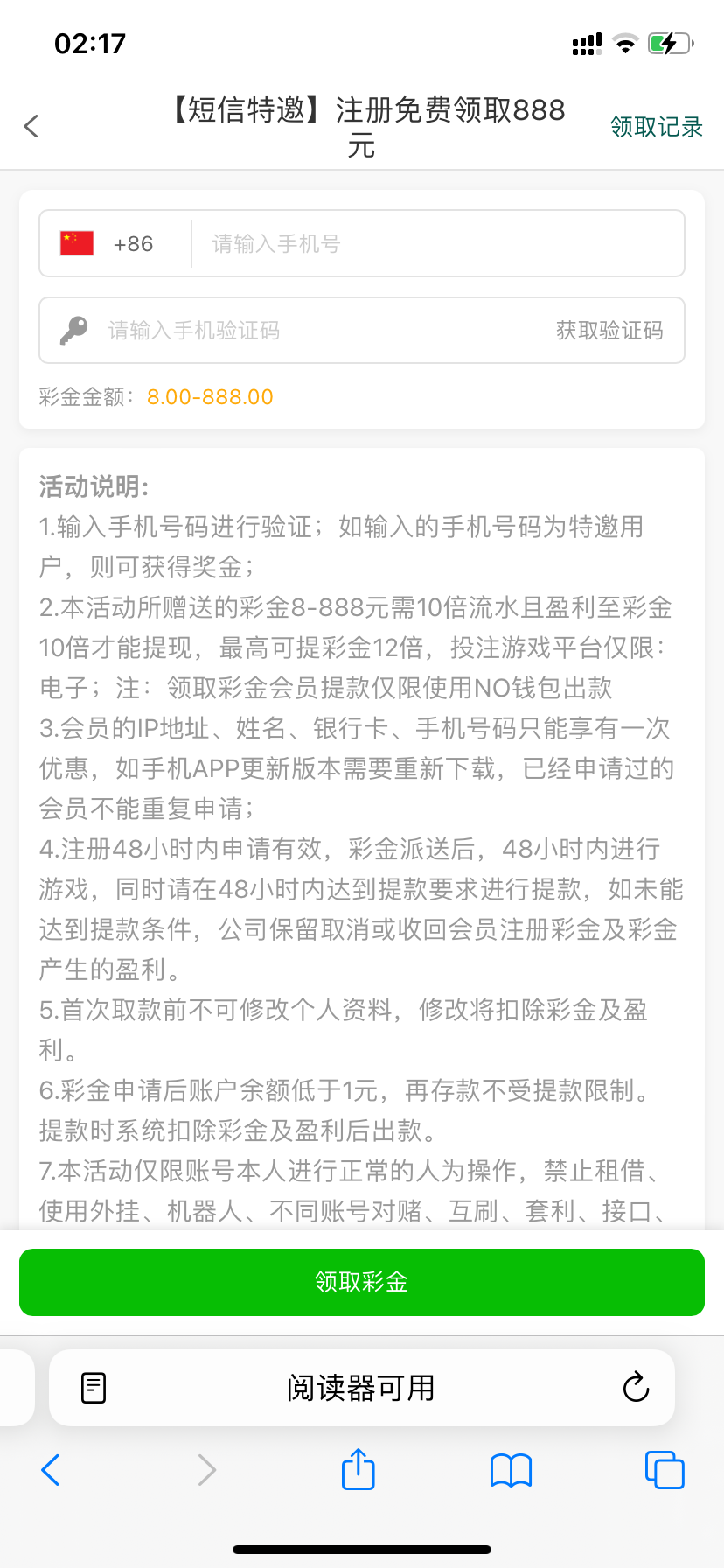 网址: 034.com 然后还有个验证短信彩金自己试试