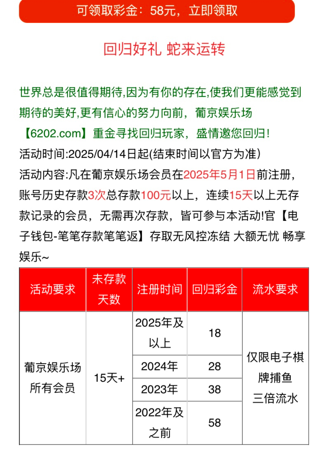 刚刚接了个电话,有号的自己去看看有没有,我一分没充过,领了58,网址 6202.com
