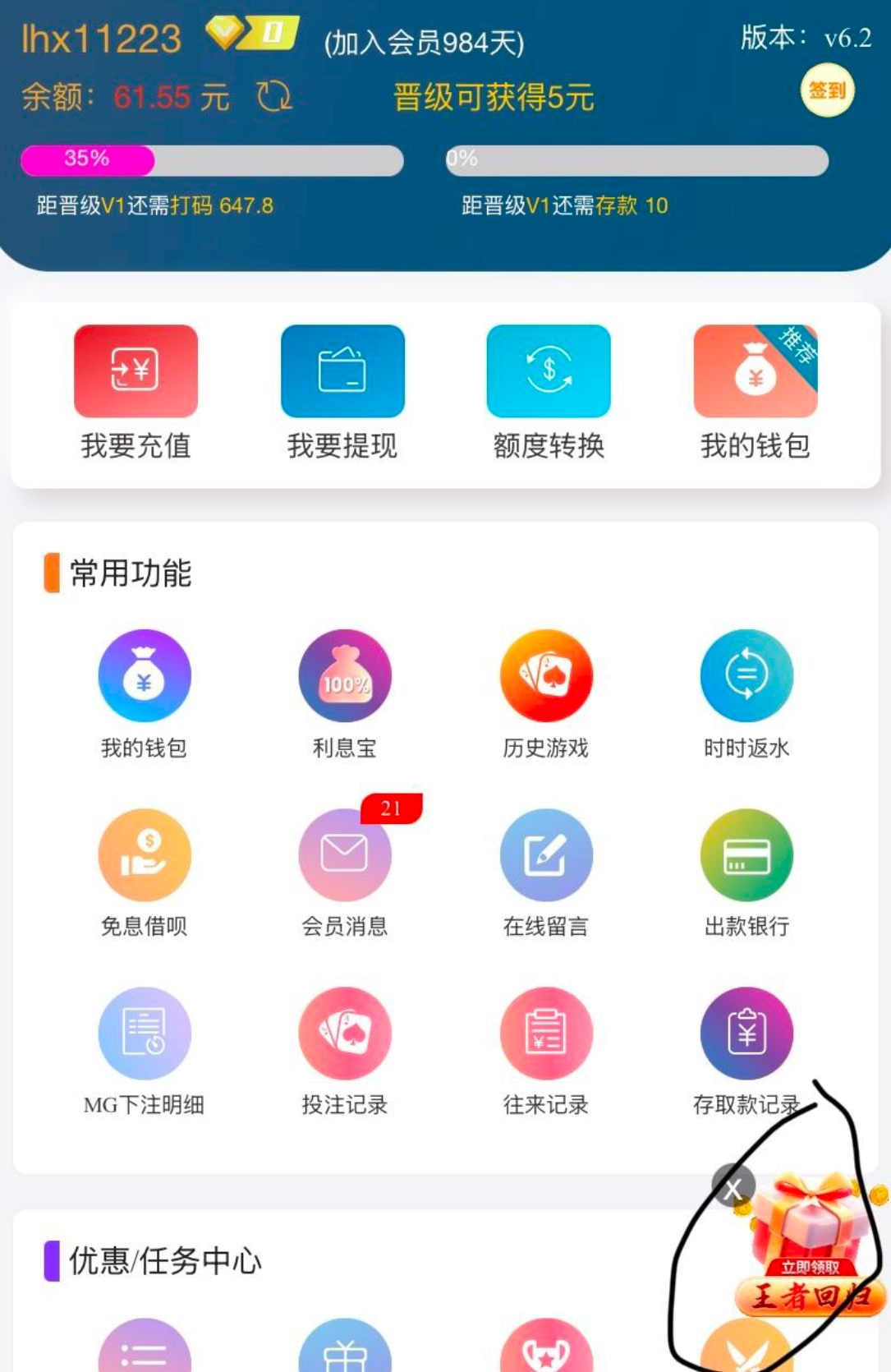 看图了吗就说 差10存款到vip1看不见吗 我说没充过就是没
