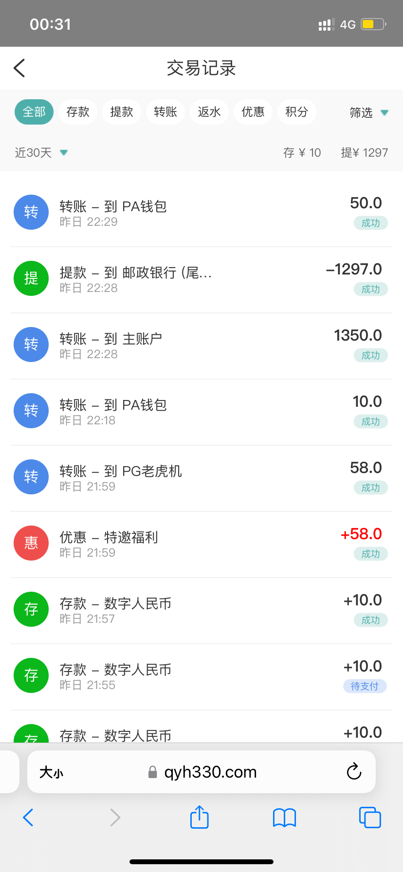 用球友会送的58优惠券打到300提现到账了,我有三个自己姓名的账号都给我到账了,本来赢了800多了,怕不会到账,我又傻乎乎的去输掉500,你们有送券的话可以去试试,冲十块就可以用的那种券。