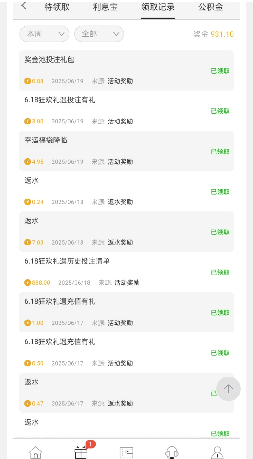 历史投注彩金前天领了888有号的上去看一下