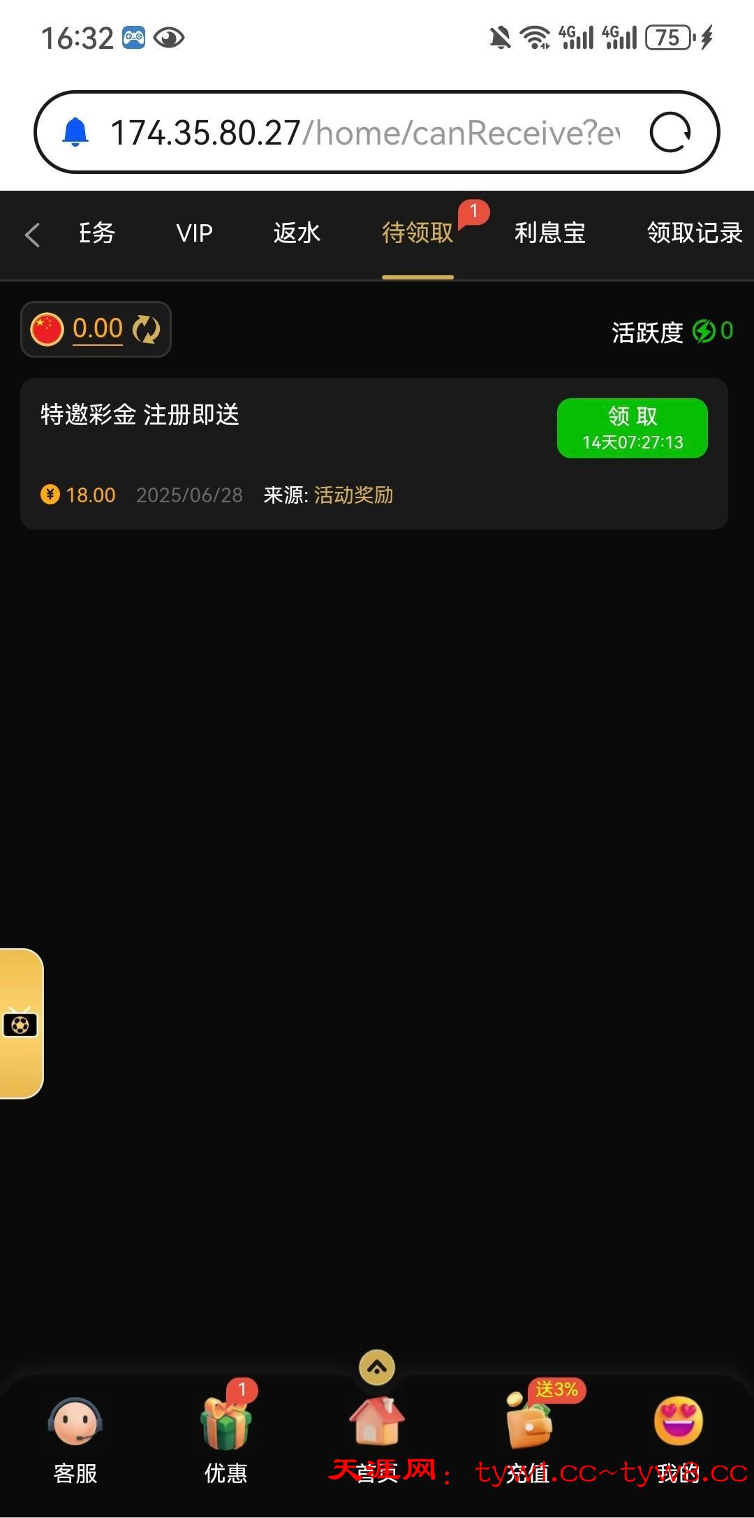 刚接到电话送了18,账号不知道什么时候注册的,没有充值过,没有号可以先注册等电话