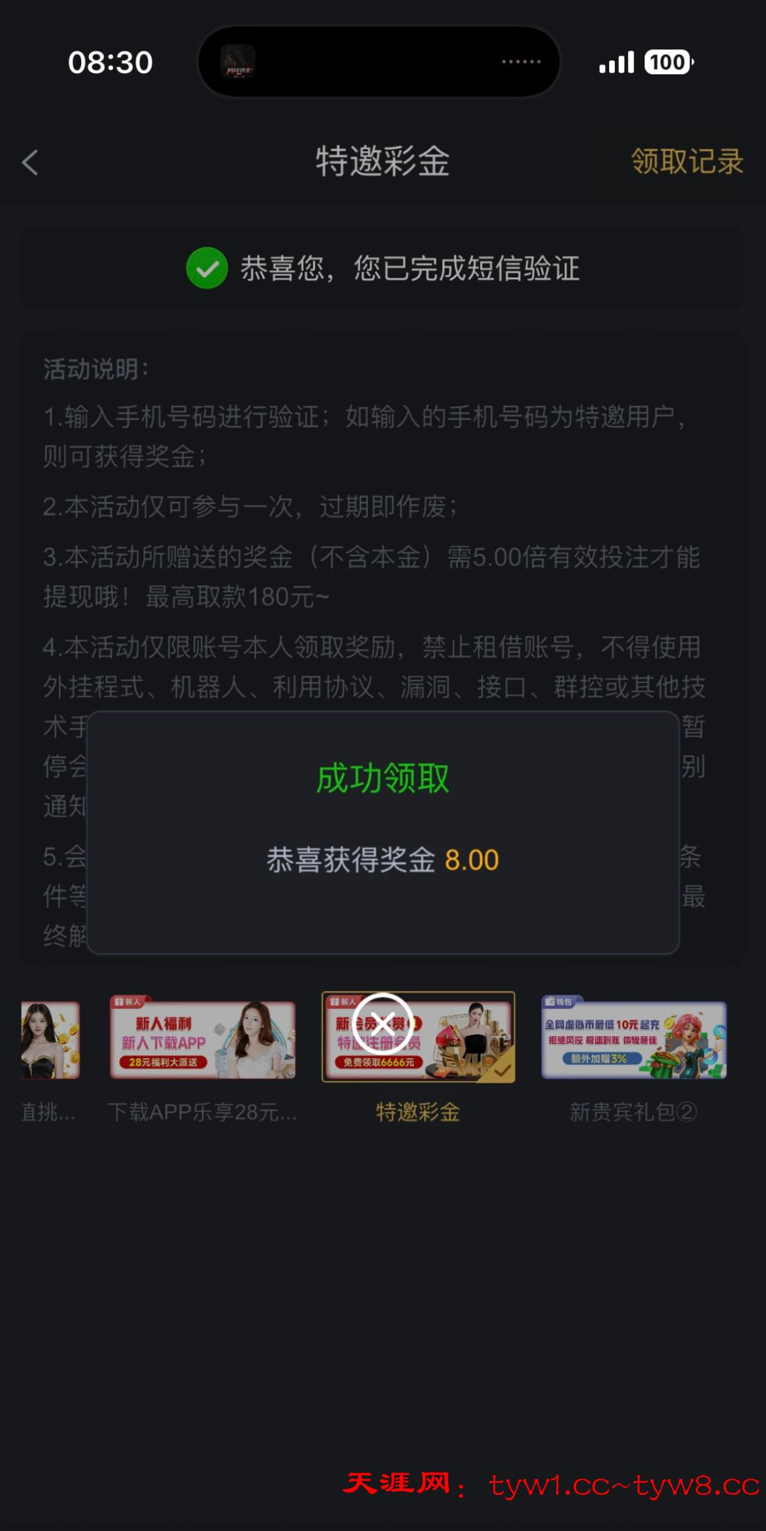 特邀彩金领了8刚刚弹个红包出来领了10多块。